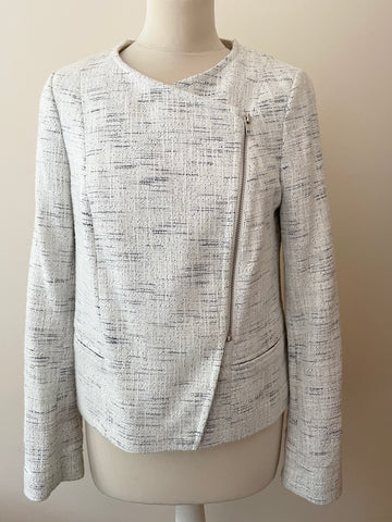 JOHN LEWIS CAPSULE COLLECTION IVORY & NAVY BLUE FLECK COLLARLESS ZIP UP JACKET SIZE 12