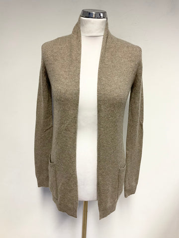 JOHN LEWIS DARK BEIGE 100% CASHMERE CARDIGAN SIZE XS