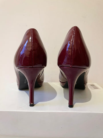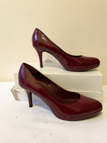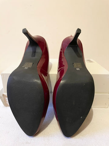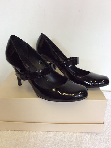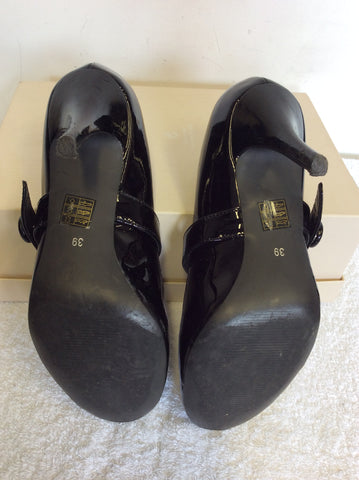 JONES THE BOOTMAKER BLACK SUEDE & BURGUNDY PATENT TRIM MARY JANE HEELS SIZE 6/39