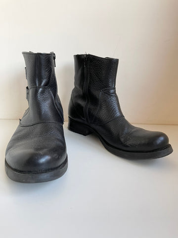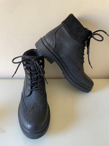 JONES THE BOOTMAKER BLACK LEATHER LACE UP PADDED TOP ANKLE BOOTS