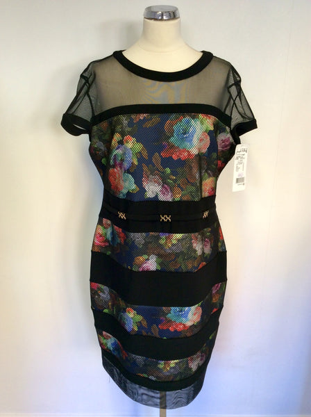 BRAND NEW JOSEPH RIBKOFF BLACK MESH & FLORAL PRINT DRESS SIZE 20