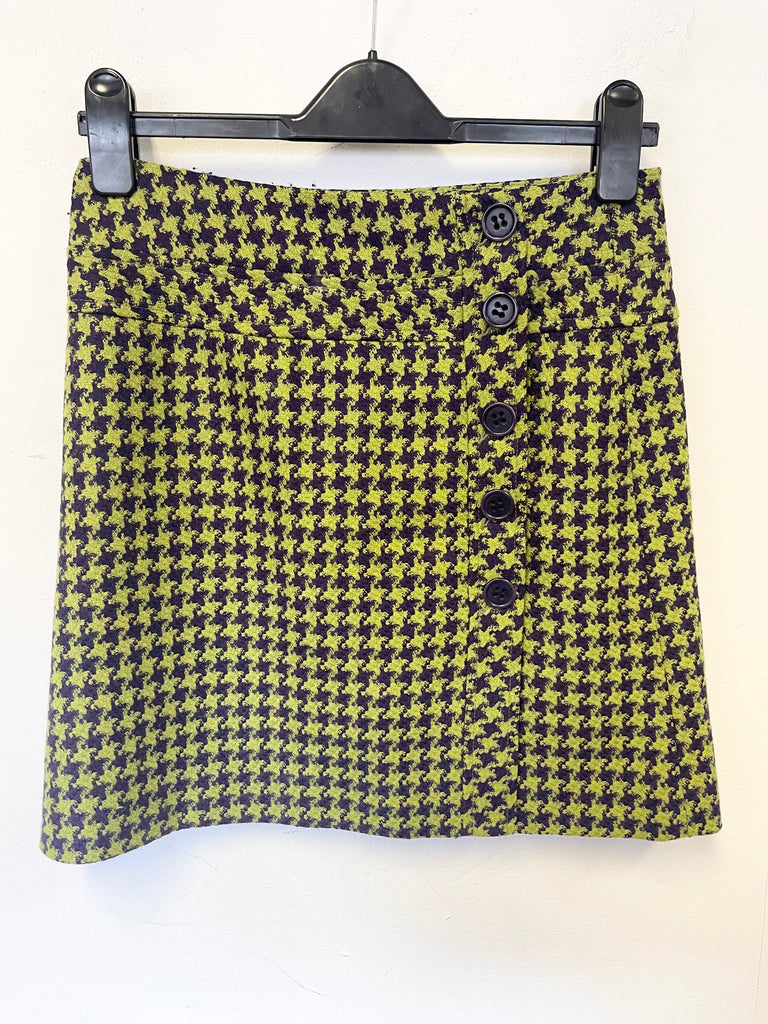 JOSEPH 100% WOOL GREEN & PURPLE CHECK A-LINE SKIRT SIZE 38 UK 10