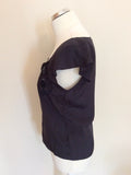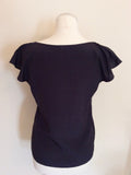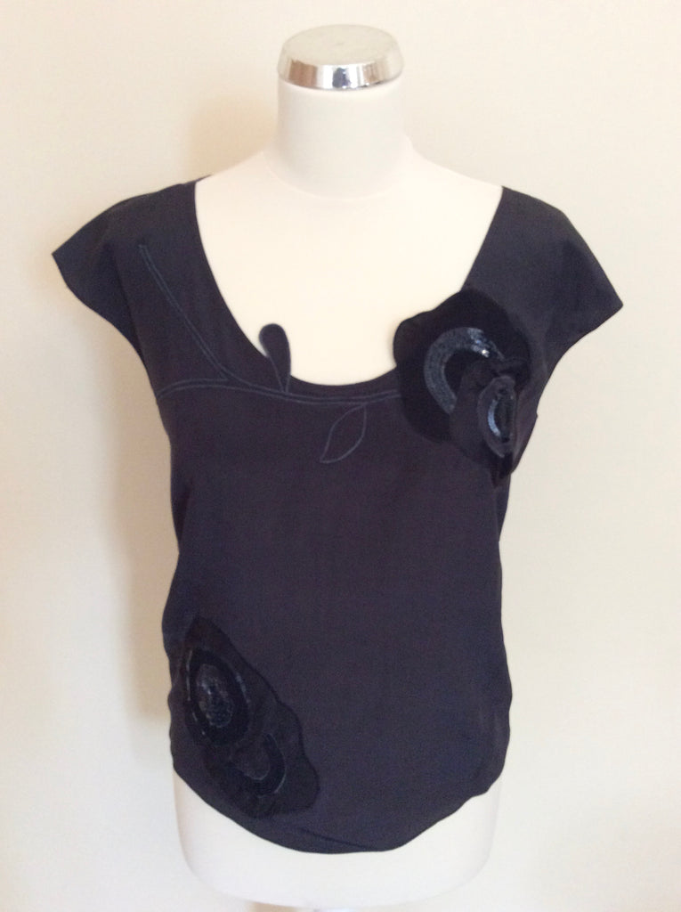 JOSEPH BLACK SILK CAP SLEEVE APPLIQUÉ FLOWER TRIM TOP SIZE S