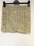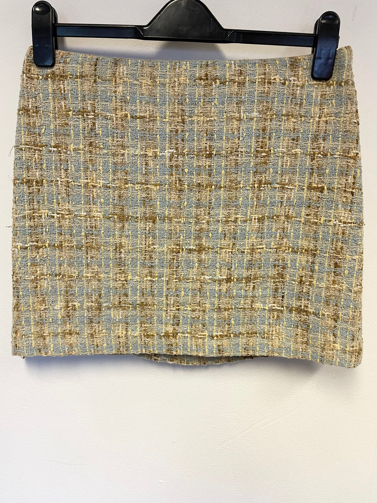 JOSEPH BLUE, BROWN & CREAM TWEED SHAPED BACK MINI SKIRT SIZE M