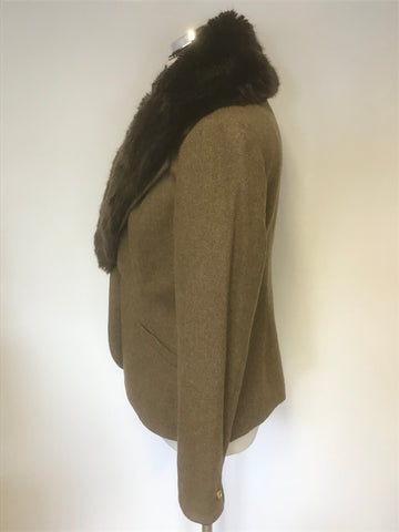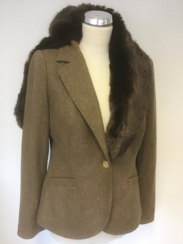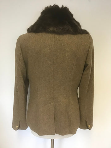 JOULES LARKWORTH BROWN TWEED JACKET WITH DETACHABLE FAUX FUR COLLAR SIZE 14