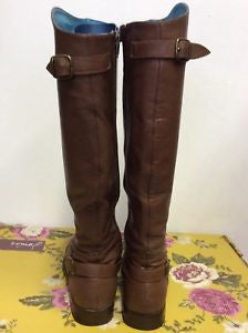 JOULES MERSTONE BROWN LEATHER BUCKLE TRIM KNEE LENGTH BOOTS SIZE 6/39