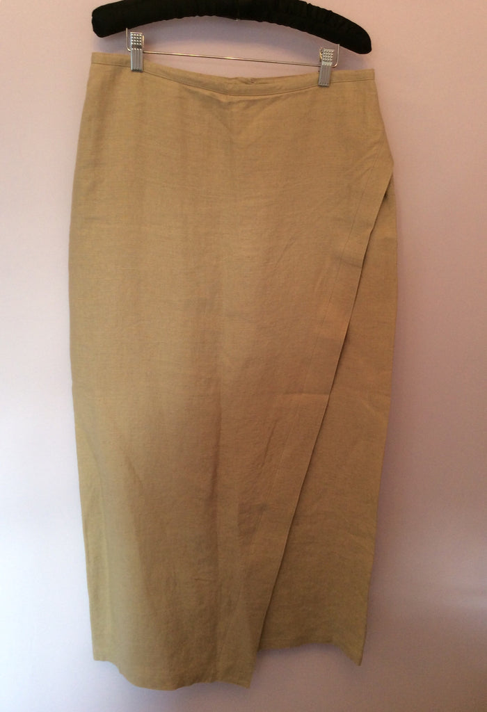 Joyce Ridings Beige Linen Long Wrap Across Skirt Size 14