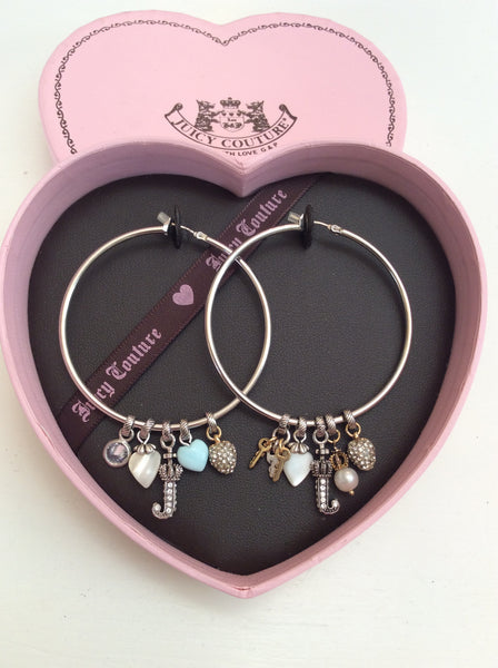 BRAND NEW JUICY COUTURE SILVER HOOP EARRING WITH HANGING PENDANTS