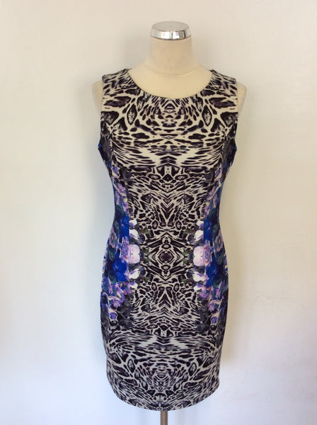 BRAND NEW STAR BY JULIEN MACDONALD BLUE FLORAL & LEOPARD PRINT PENCIL DRESS SIZE 12