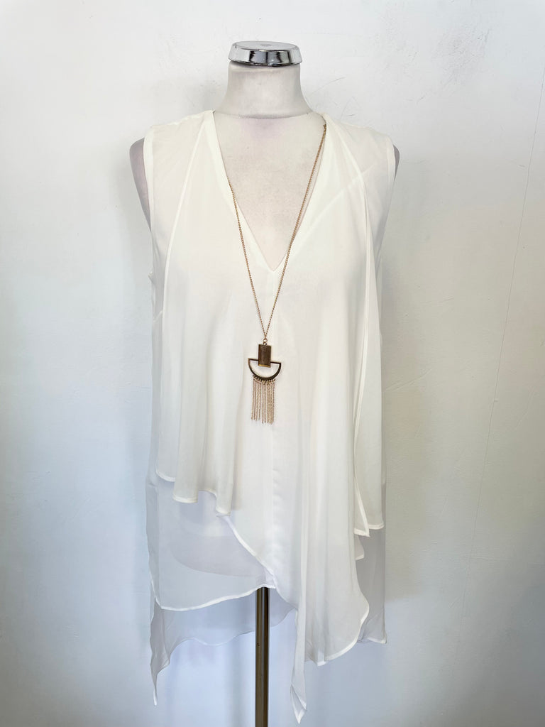 BRAND NEW WITH TAGS STAR BY JULIEN MACDONALD WHITE TIERED SLEEVELESS TOP WITH NECKLACE