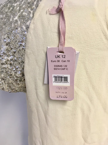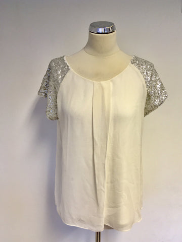 BRAND NEW KALIKO IVORY SILK SEQUINED SLEEVE TOP SIZE 12
