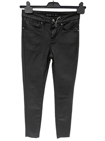BRAND NEW KAREN MILLEN BLACK WAX COATED ANKLE ZIP SKINNY LEG JEANS SIZE 8