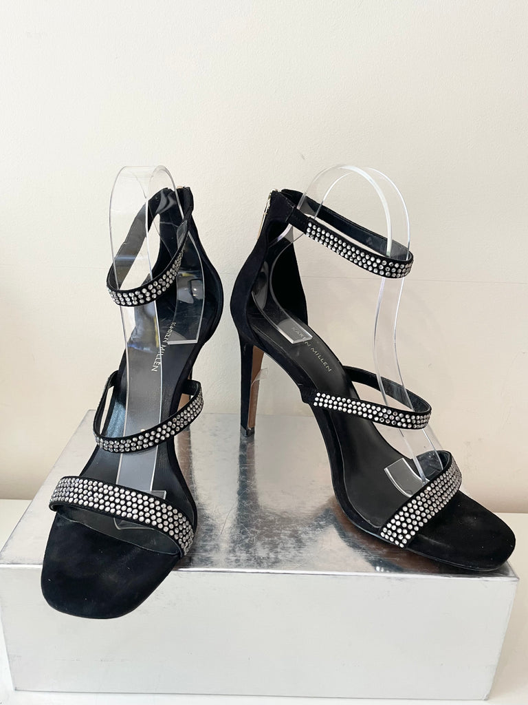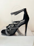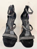 KAREN MILLEN BLACK SUEDE RHINESTONE TRIM STRAPPY HIGH HEEL SANDALS SIZE 7/40
