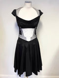 KAREN MILLEN BLACK ,WHITE & MESH TRIMMED CAP SLEEVE FIT & FLARE DRESS SIZE 10