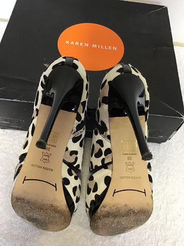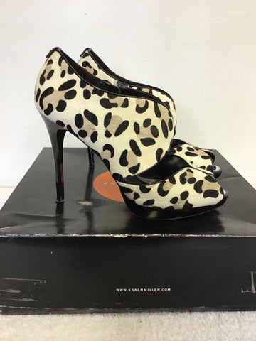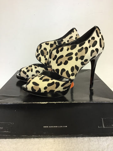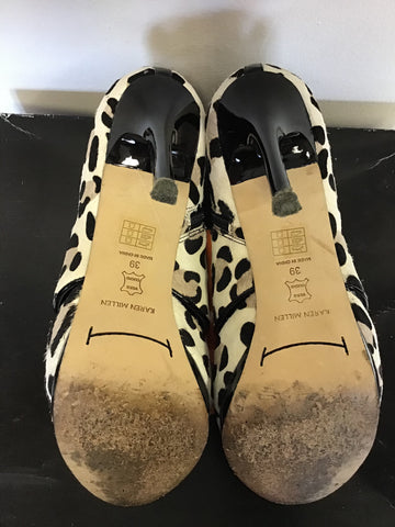 KAREN MILLEN PONY SKIN LEOPARD PRINT PEEP TOE HEELS SIZE 6/39