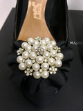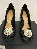 BRAND NEW KURT GEIGER BLACK SATIN PEARL & DIAMANTÉ TRIM PEEPTOE HEELS SIZE 5/38