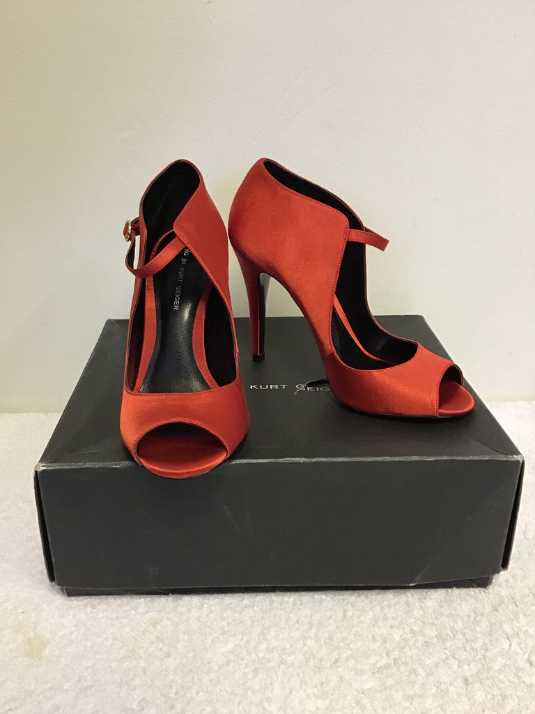 BRAND NEW KURT GEIGER RED SATIN PEEPTOE OCCASION HEELS SIZE 5/38