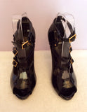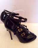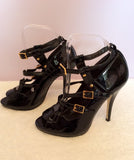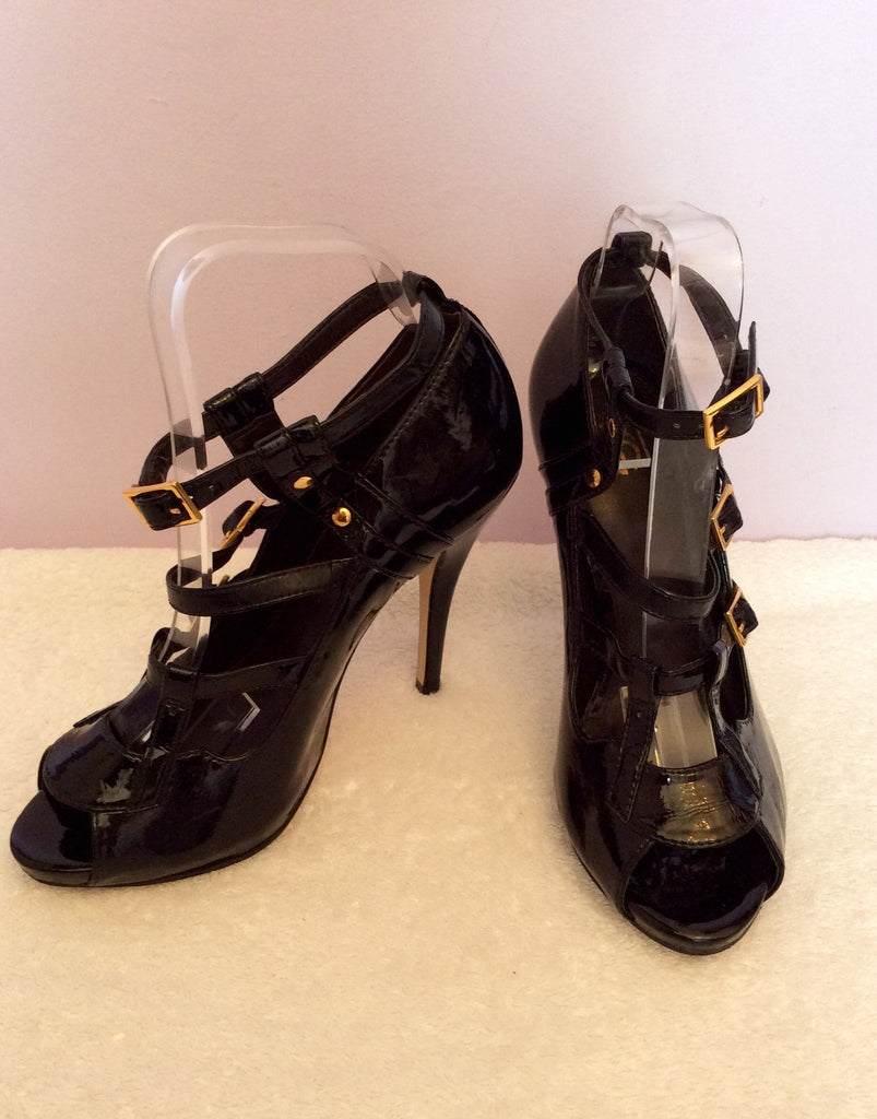 Kurt Geiger Black Patent Peeptoe Buckle Straps Heels Size 5/38