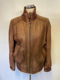 LAKELAND TAN BROWN SOFT LEATHER BOMBER JACKET SIZE 14