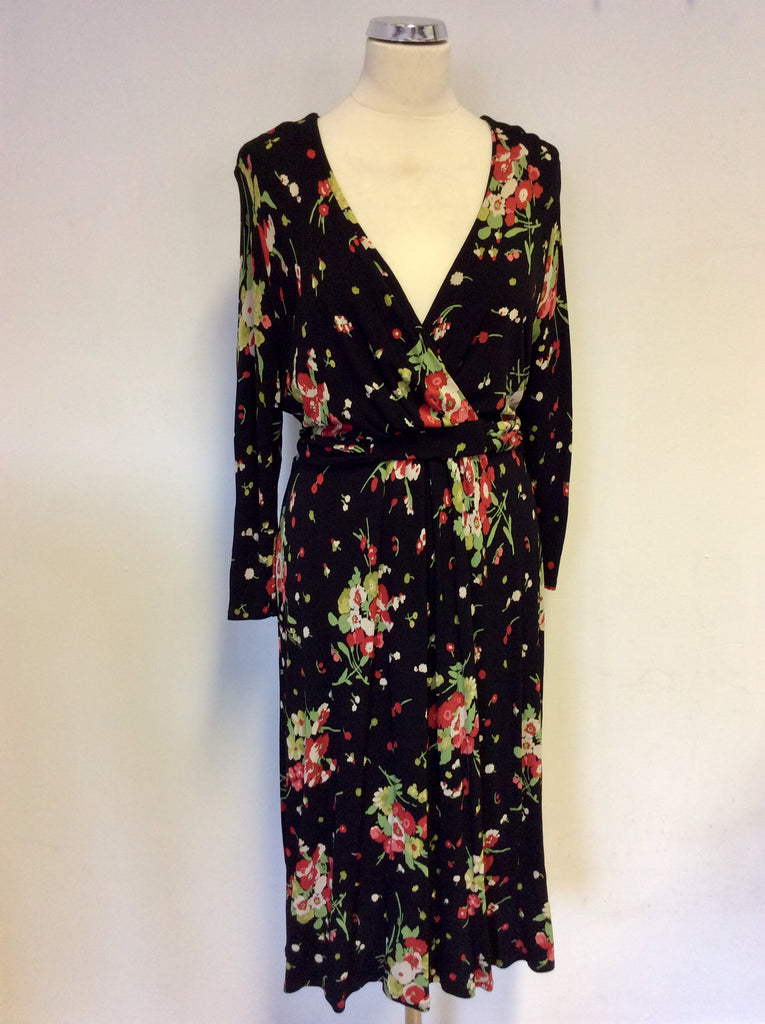 LAURA ASHLEY BLACK FLORAL PRINT WRAP STYLE DRESS