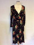 LAURA ASHLEY BLACK FLORAL PRINT WRAP STYLE DRESS SIZE 20