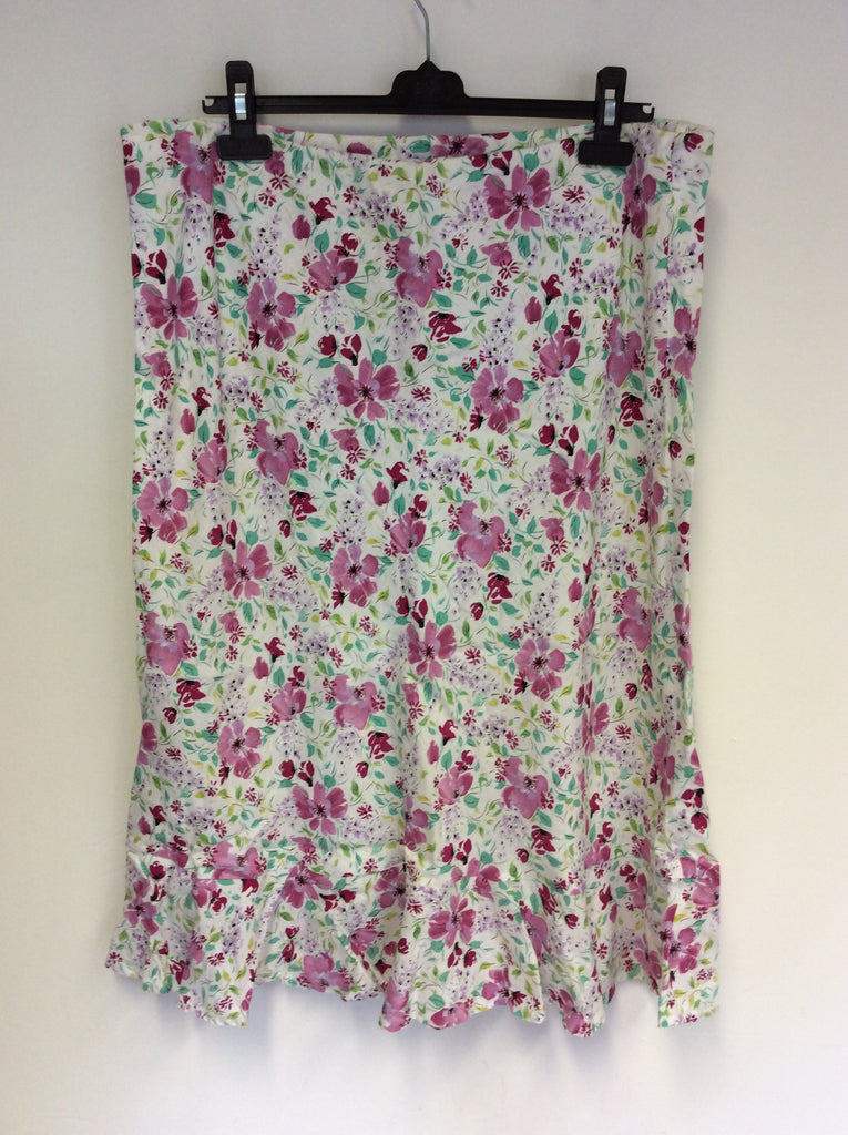 LAURA ASHLEY WHITE FLORAL PRINT LINEN SKIRT SIZE 18