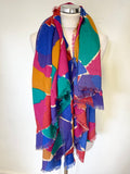 VINTAGE LIBERTY 100% WOOL MULTICOLOURED FRINGED LARGE SQUARE SCARF /WRAP