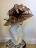 LINEA LIGHT BROWN BOW & FEATHER TRIM FORMAL HAT ONE SIZE