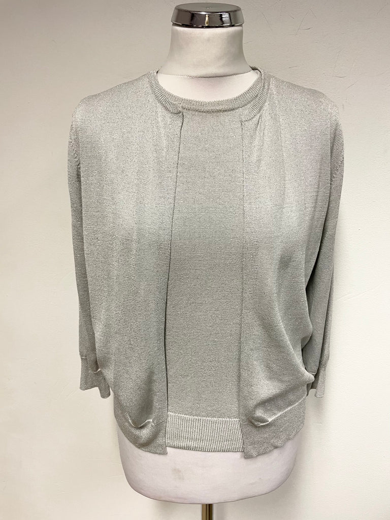 LIZ CLAIBORNE SILVER METALLIC TOP & CARDIGAN TWIN SET