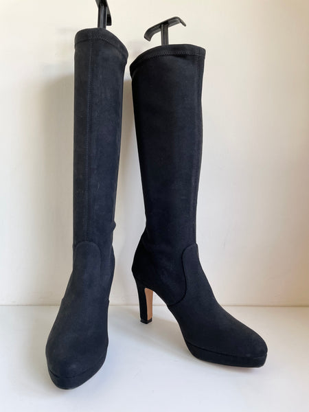 BRAND NEW LK BENNETT BLACK FAUX SUEDE HEELED STRETCH SOCK BOOTS SIZE 3.5/36