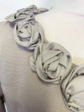 JACKET HAS SCOOPED NECKLINE WITH FLOWER TRIM