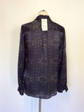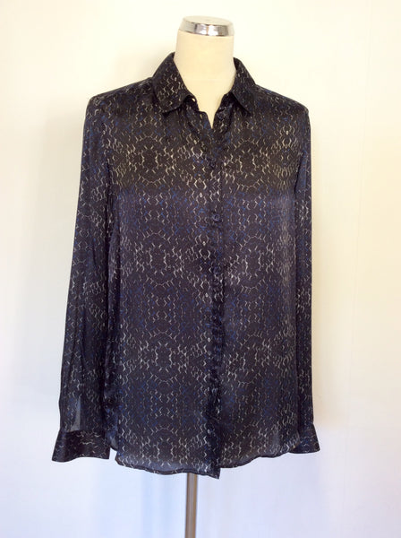 BRAND NEW LK BENNETT NAVY BLUE PRINT SILK BLOUSE SIZE 14