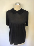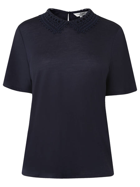 BRAND NEW LK BENNETT SLOANE BLUE CAMBEL LACE COLLAR SHORT SLEEVE TOP SIZE S