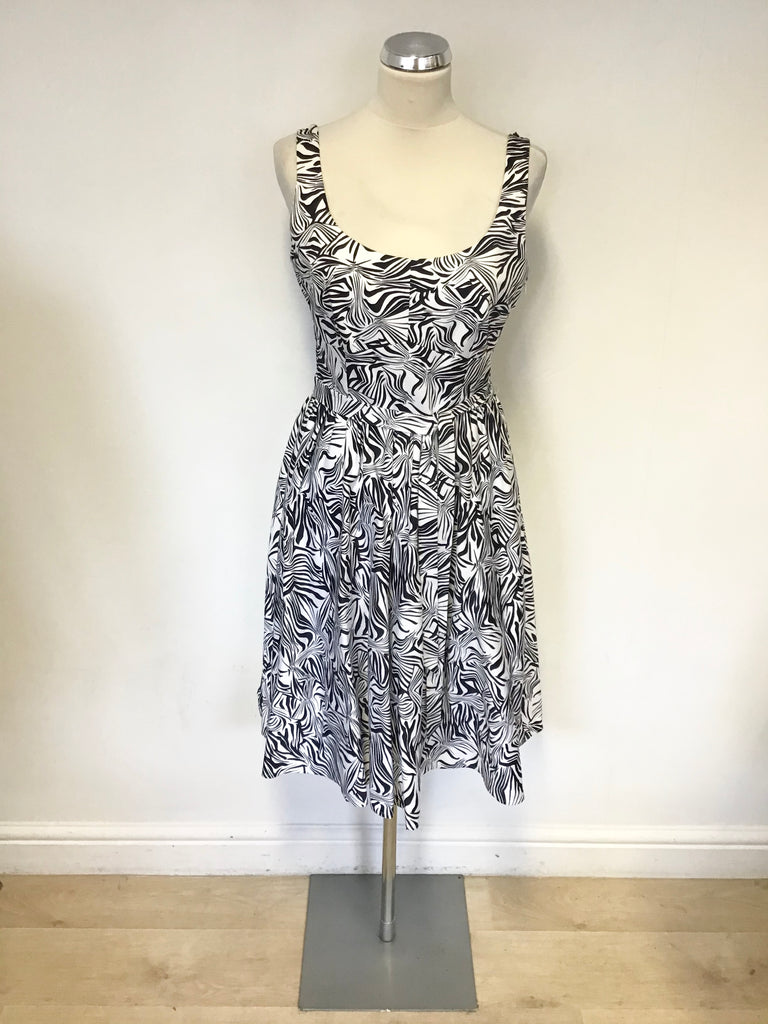 BRAND NEW SAMPLE LK BENNETT BLACK & WHITE PRINT SLEEVELESS FIT & FLARE DRESS SIZE 8/10