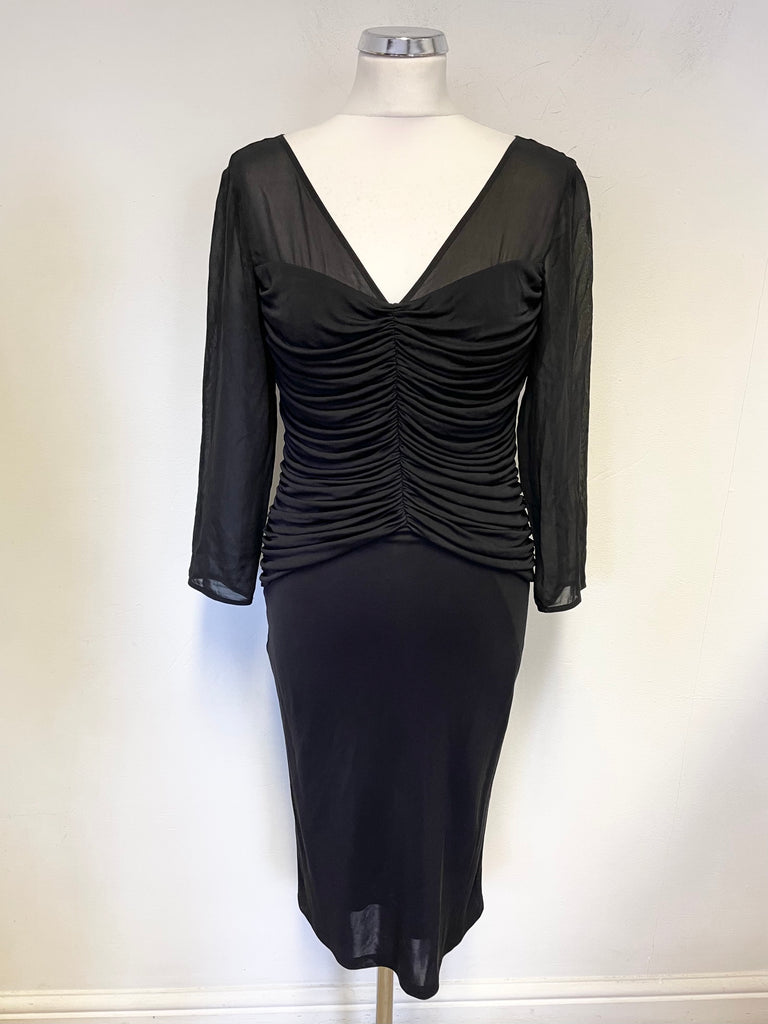 EX SAMPLE LK BENNETT ANIS BLACK RUCHED BODICE 3/4 SLEEVED PENCIL DRESS SIZE 10