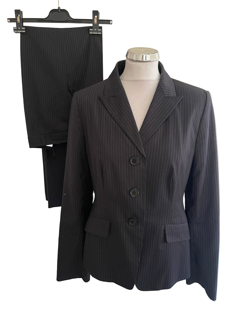 L.K BENNETT CHARCOAL PINSTRIPE TAILORED TROUSERS SUIT SIZE 14