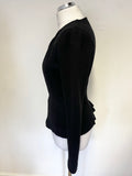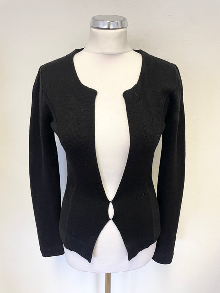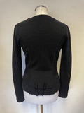 LK BENNETT 100% WOOL LONG SLEEVED FITTED CARDIGAN WITH TIERED FRILL REAR SIZE S