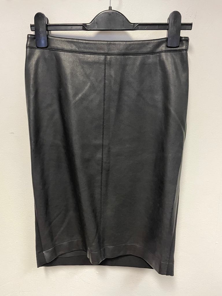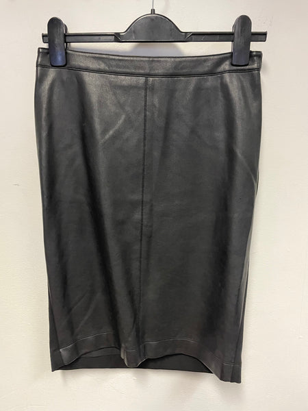 LK BENNETT AGAVE BLACK FAUX LEATHER FRONT PENCIL SKIRT SIZE 8