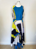 LK BENNETT ALMIA MULTICOLOURED PRINT SPECIAL OCCASION MIDI DRESS SIZE 12
