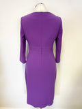 LK BENNETT ALO PURPLE 3/4 SLEEVED WRAP ACROSS PENCIL DRESS SIZE 10