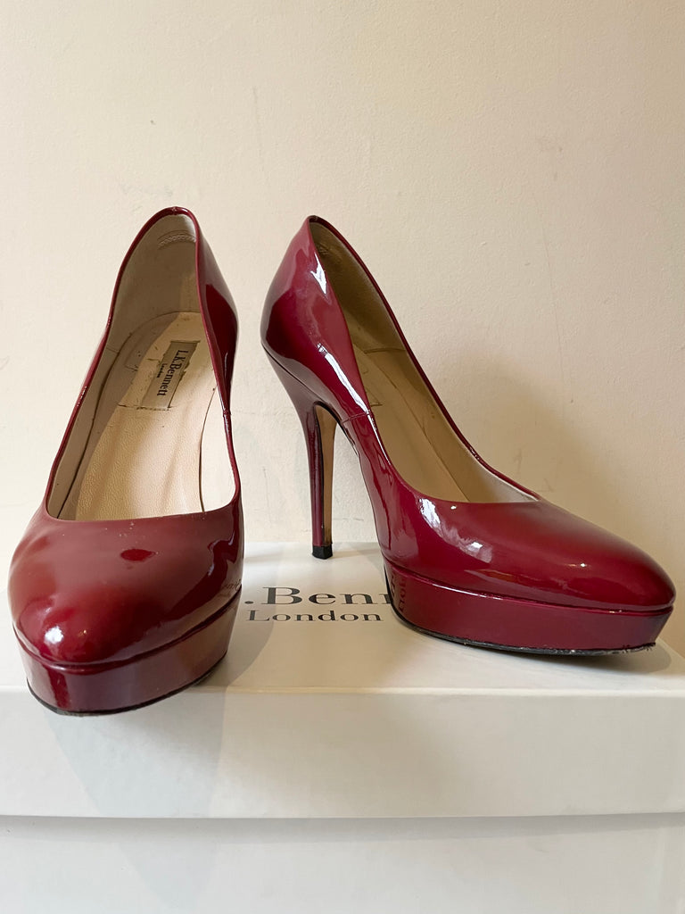 LK BENNETT ANDIE DARK RED PATENT LEATHER PLATFORM SOLE HEELS