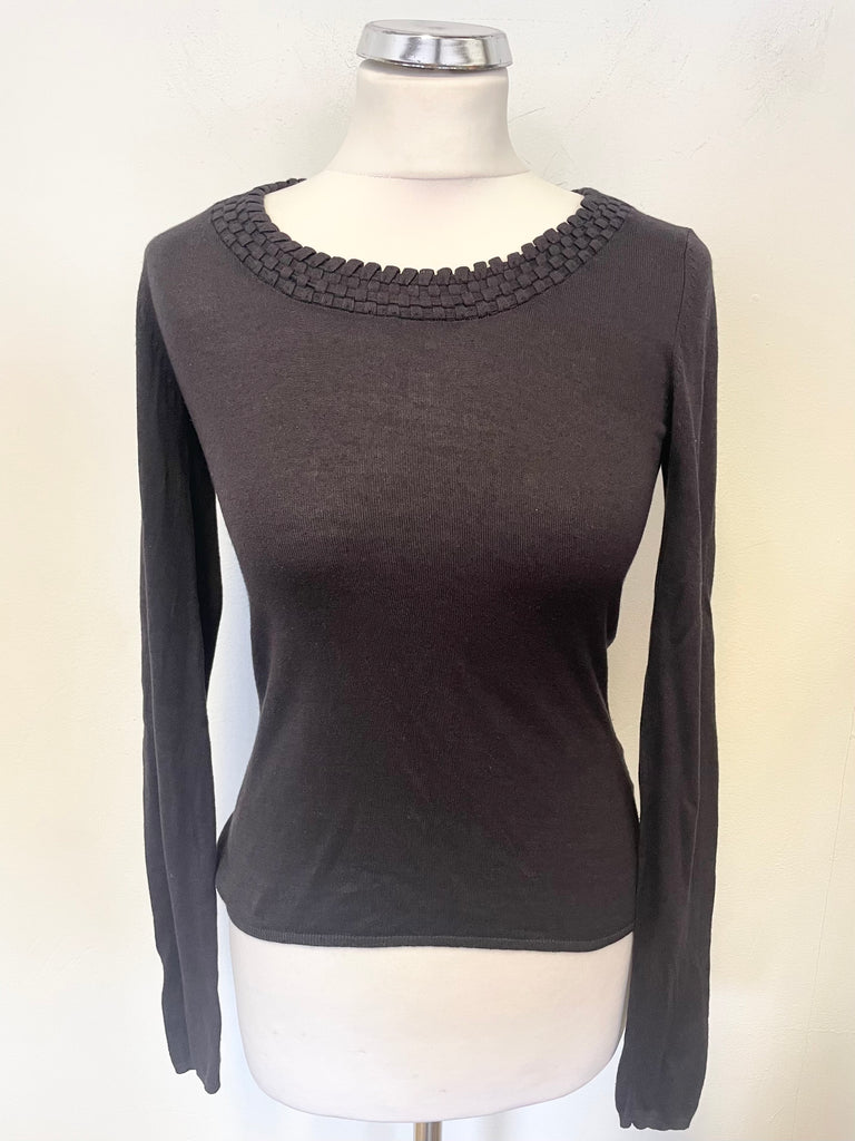 LK BENNETT AUBERGINE SILK & CASHMERE FINE KNIT LONG SLEEVED JUMPER SIZE S
