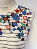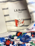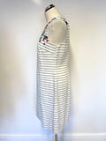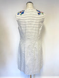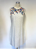 LK BENNETT BEA BLUE & WHITE STRIPE WITH FLORAL EMBROIDERY SHIFT DRESS SIZE 12