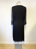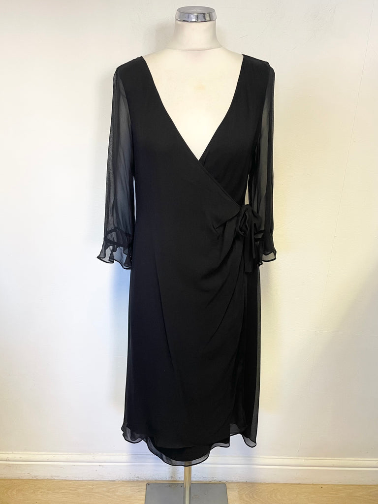 LK BENNETT BLACK 100% SILK 3/4 SLEEVE WRAP DRESS SIZE 12