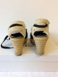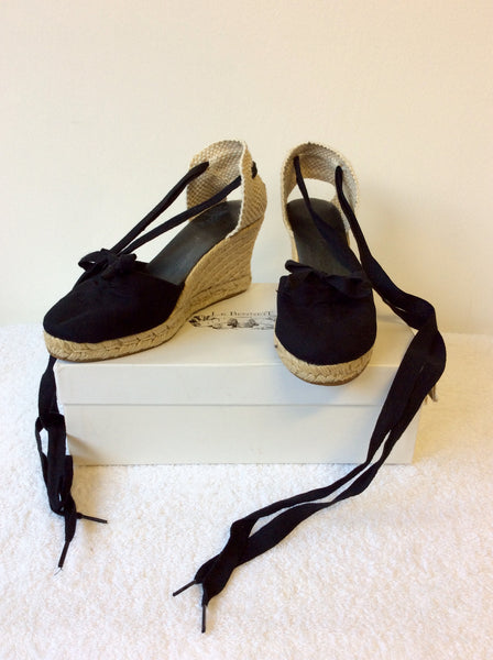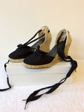 LK BENNETT BLACK CANVAS WEDGE HEEL SANDALS