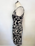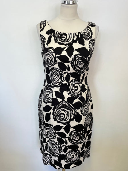 LK BENNETT BLACK & CREAM FLORAL PRINT SLEEVELESS PENCIL DRESS SIZE 12