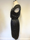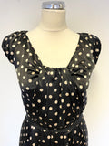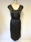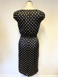 LK BENNETT BLACK & CREAM SPOT SILK CAP SLEEVE PENCIL DRESS SIZE 8