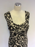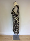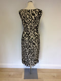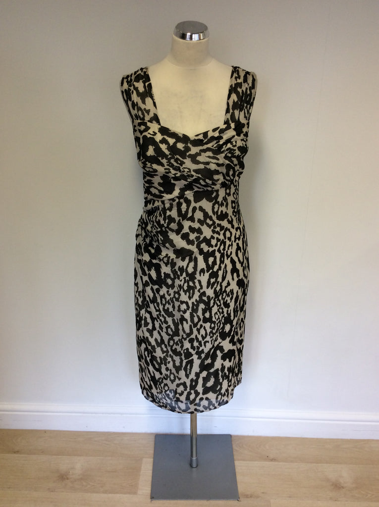 LK BENNETT BLACK & IVORY ANIMAL PRINT SILK PENCIL DRESS SIZE 16