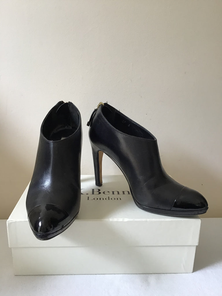 LK BENNETT BLACK LEATHER ZIP HEEL TRIM SHOE BOOTS SIZE 4/37