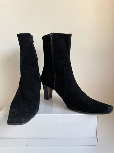 LK BENNETT BLACK SUEDE HEELED ANKLE BOOTS SIZE 4/37